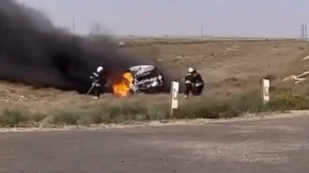 According to preliminary information, the driver of a Toyota Estima lost control while driving on the Aktau – Fort-Shevchenko highway, causing the vehicle to overturn and catch fire.