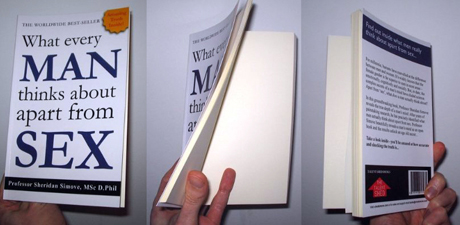 Sheridan Simove has produced a 200 page book entitled “What Every Man Thinks About Apart From Sex” that has quickly become a bestseller in Britain, The Telegraph reports. “Author” Sheridan Simove said: “This book is the result of 39 years of painstaking research and practical study into the subject. I left nothing to chance and really threw myself into my work. “After many years of hard work I finally realised that men think of absolutely nothing apart from sex. It was a shocking conclusion and I realised that the world needed to be informed of my findings. “I never thought for one moment that my life’s work would be embraced by Britain’s students in their thousands. It is very gratifying to see my book outselling many other academic works whose authors claim to have worked even harder than I to break new ground and further the extent of human knowledge.” The £4.69 ($7.6) item, which was intended as a novelty gift, is being used by students as a notebook. Nottingham university student Jess Lloyd said: “I bought a copy for my mate as a joke and he started using it as a note pad for lectures. Now everyone seems to have one. It’s started a real craze on campus.” Mr Simove, 39, an Oxford University graduate who is an author, performer and entrepreneur, added: “I never anticipated that my book would be used for students to take their lecture notes in. In a sense they are proving me wrong by filling my book with content. “I now intend to develop my research further and am planning a PhD at the university of life on the subject of what women think about apart from sex. I hope to publish my findings in another decade.”
