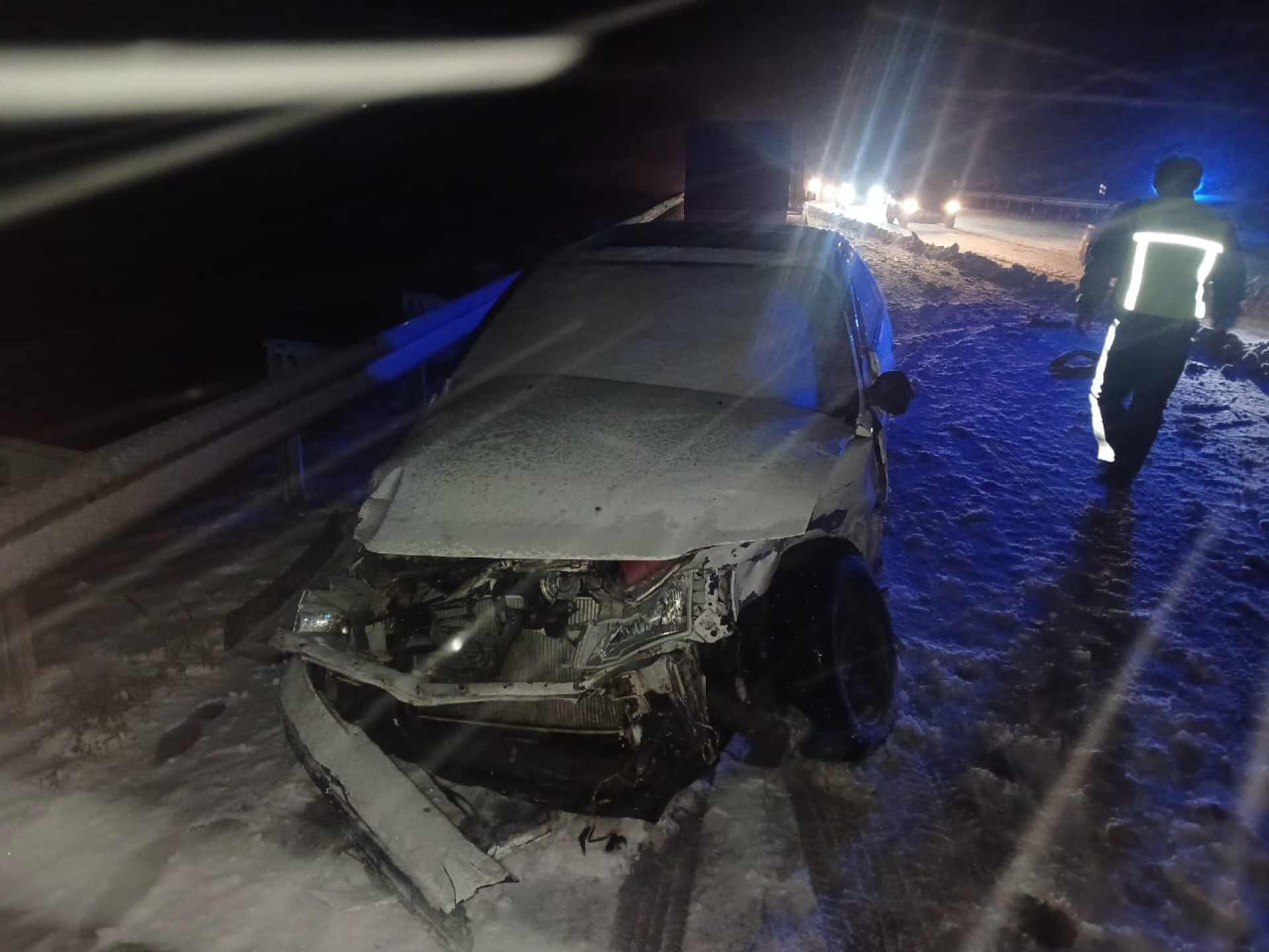 One of the incidents occurred on the Astana–Petropavlovsk highway, where four vehicles — a Toyota Carina E, Niva, Kia Rio, and BMW X5 — collided in a chain reaction. According to preliminary data from the patrol police, the accident began when the Toyota driver failed to keep a safe distance on a slippery road. Fortunately, no one was injured, but all cars sustained mechanical damage.