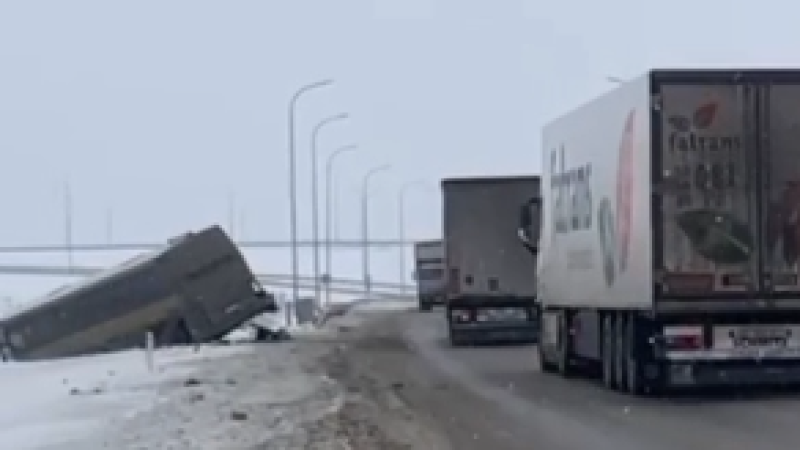 Bus with foreign passengers involved in road accident in Kyzylorda region Image created from video frames