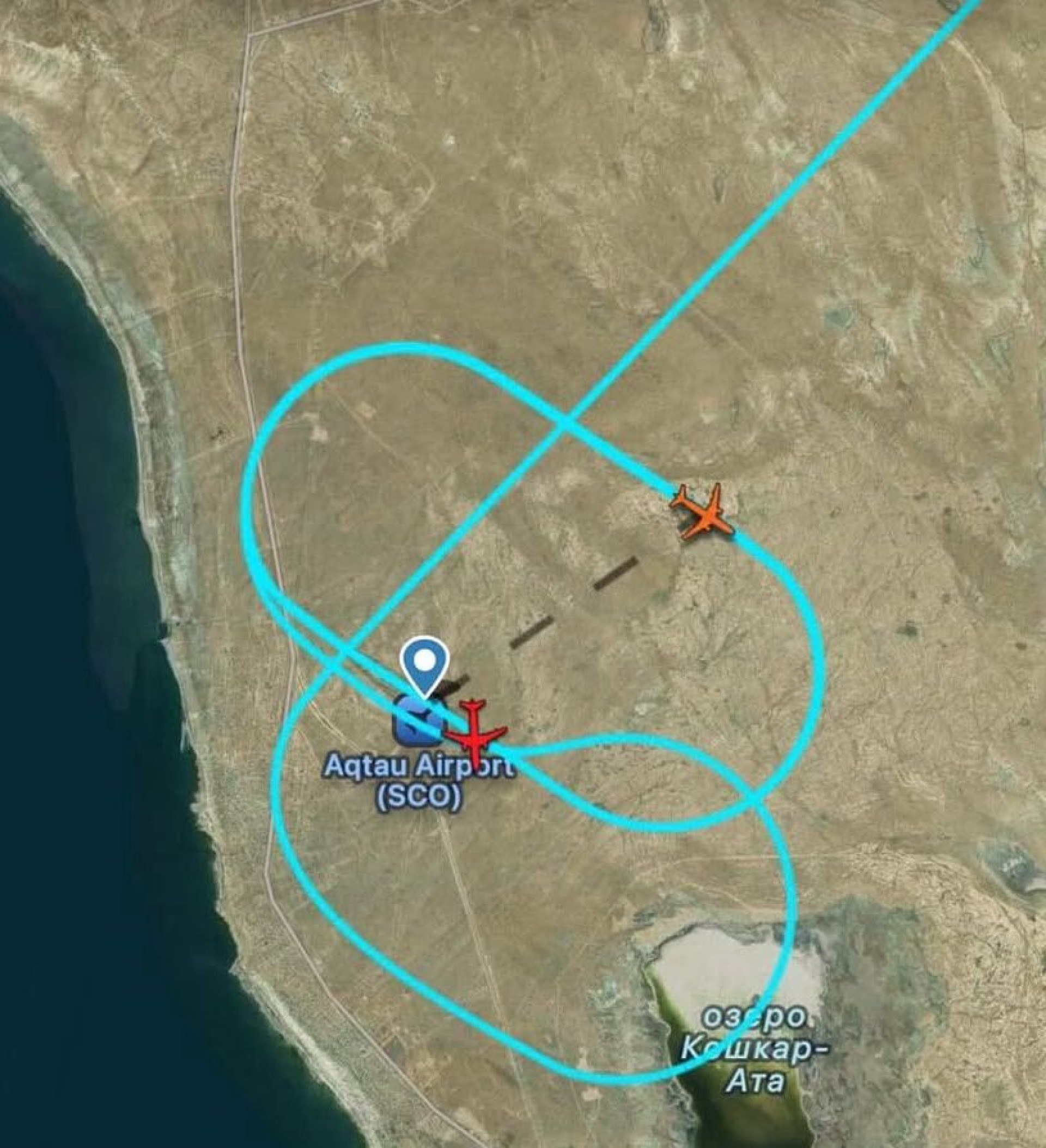 FlightRadar24 data showed the plane circling several times above Aktau Airport before landing.