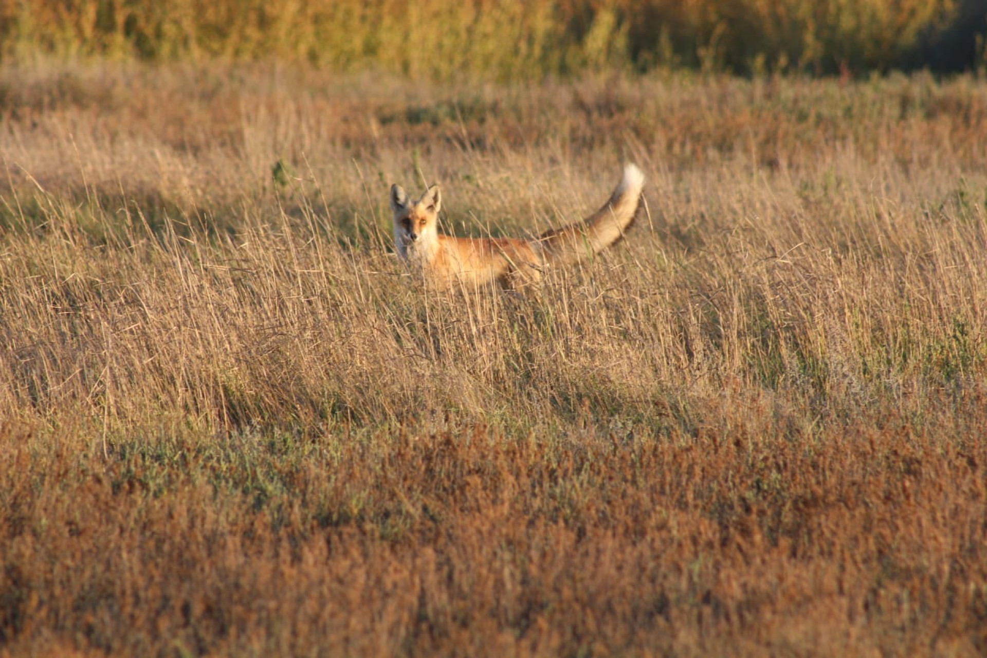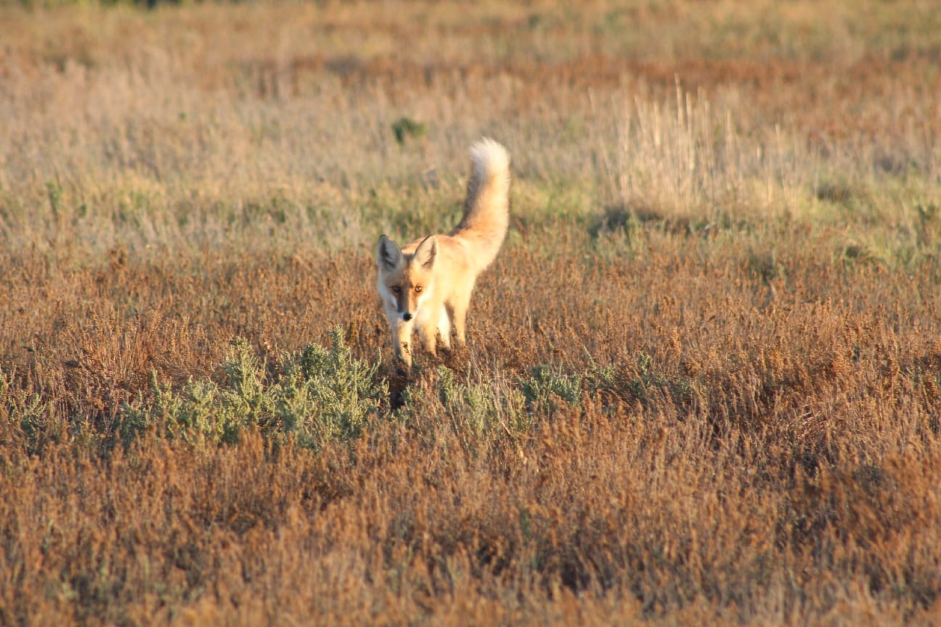 The press service of the Korgalzhyn Nature Reserve reported that the photos show a red fox (Vulpes vulpes). The images were taken by science department inspectors who encountered the animal during field research in the protected area.