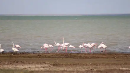 “Flamingos choose saline lakes for living and nesting, where they find food. They filter silt and water through their beaks, feeding on small crustaceans, mollusks, insect larvae, and plant seeds. To do this, they make characteristic side-to-side head movements, as if mowing grass. Their main food is the brine shrimp Artemia salina,” the reserve reminded.