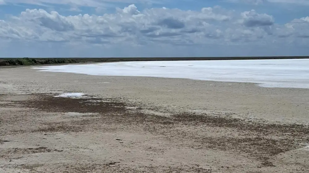 Tengrinews.kz – Photos of what appeared to be snow-covered fields in the middle of summer have surfaced from the Korgalzhyn State Nature Reserve, located southwest of Astana. However, the striking white landscape is actually a thick salt crust formed on dried-up lakes.