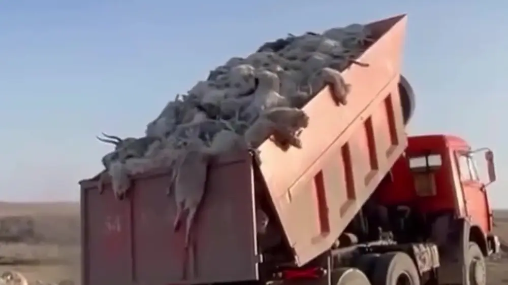 Tengrinews.kz – Alarming videos circulating online show a truck loaded with saiga antelope carcasses and others being shot while trapped inside a fenced area, drawing widespread public concern across Kazakhstan.