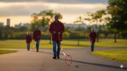 The concept is simple: a person walks outside with an empty leash, acting as if a dog were beside them — giving commands, stopping patiently as the “dog” sniffs around, and praising it for good behavior.
