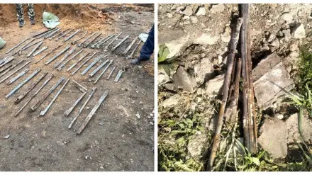 Officers stationed nearby broke apart the concrete and retrieved 46 rifle barrels and parts of hunting weapons.