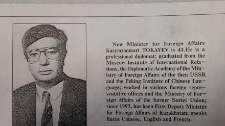 In 1994, when Tokayev was appointed Minister of Foreign Affairs, the British Foreign Office prepared a dossier on him. It highlighted his education, language skills, and work experience in China and Southeast Asian countries.