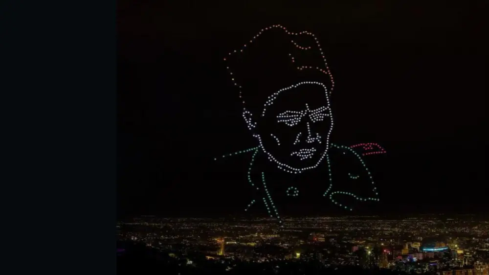 The light show, featuring over 500 drones, will take place at 9:00 PM on Abay Square.