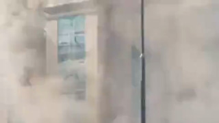 According to the footage, the restaurant building was filled with smoke. There is no information on whether anyone was inside during the fire.