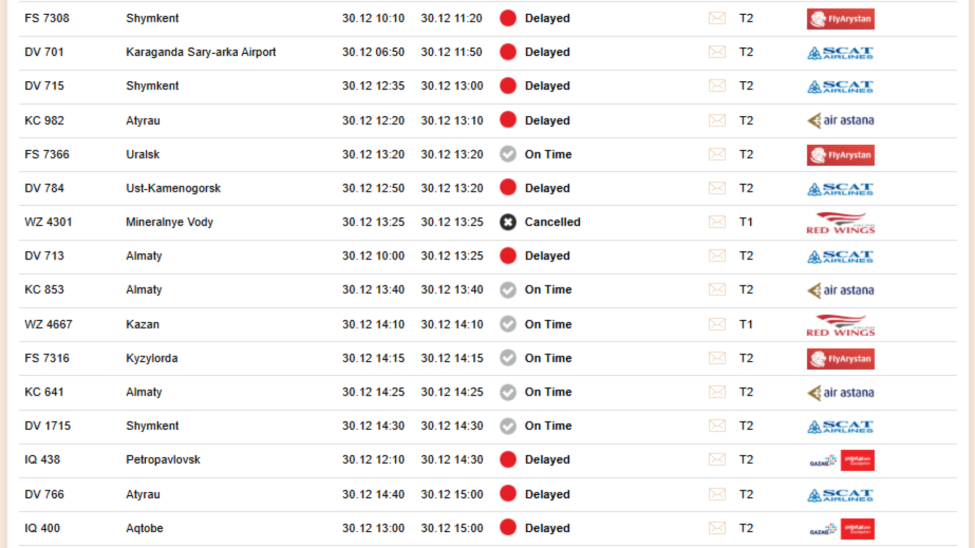 Tengrinews.kz – Weather conditions at Astana Airport remain difficult. Due to freezing rain, some flights are being operated with delays.