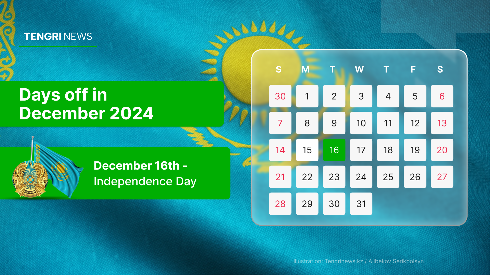 December will bring Kazakhstanis an additional day off on December 16, when the country celebrates Independence Day. In 2025, the holiday falls on a Tuesday, giving residents a short break in the middle of the week.