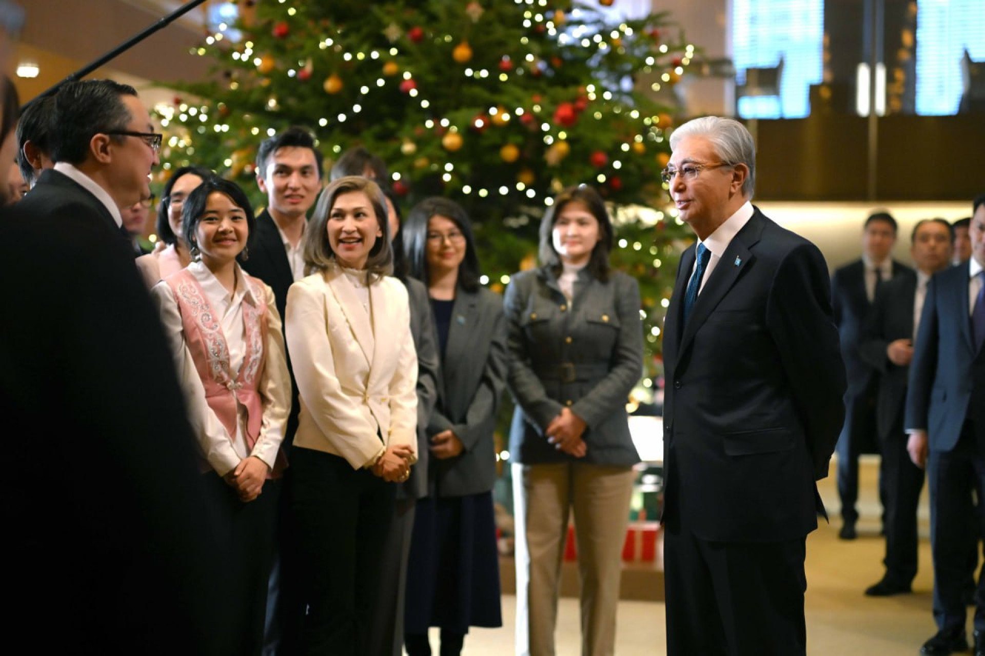 Tokayev appears to notice all these gestures and begins by thanking her for the warm welcome.