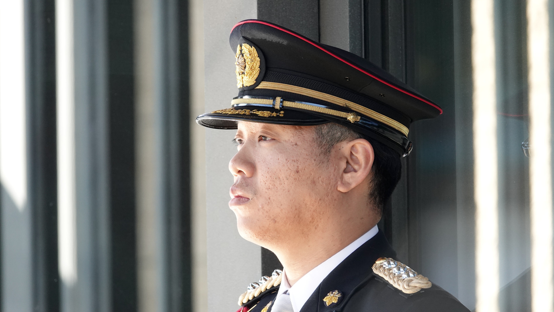 Even fatigue is not a reason for unnecessary movement. Officers at the Imperial Palace do not change posture or shift their gaze.
