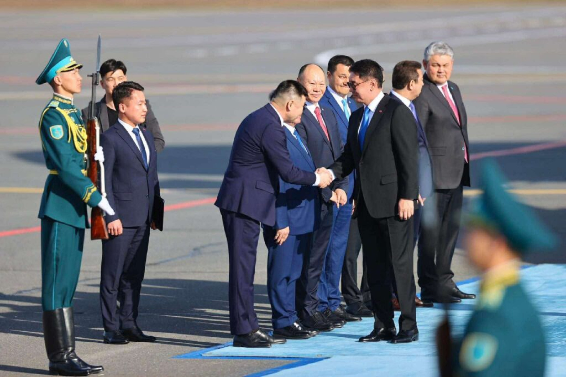 According to the press service of the Mongolian president’s administration, the Mongolian leader was welcomed at Nursultan Nazarbayev International Airport in Astana by Kazakhstan’s Foreign Minister Yermek Kosherbayev, as well as Mongolia’s Ambassador to Kazakhstan, Batjargal.
