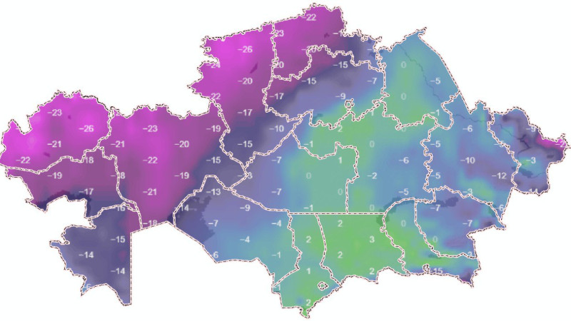 On 6 February, a significant drop in temperature is forecast in Aktobe, Kostanay, North Kazakhstan, Akmola, Kyzylorda, Turkistan and Zhambyl regions. Nighttime temperatures in some areas will fall to -23…-28°C, and in northern and western districts down to -26…-28°C.