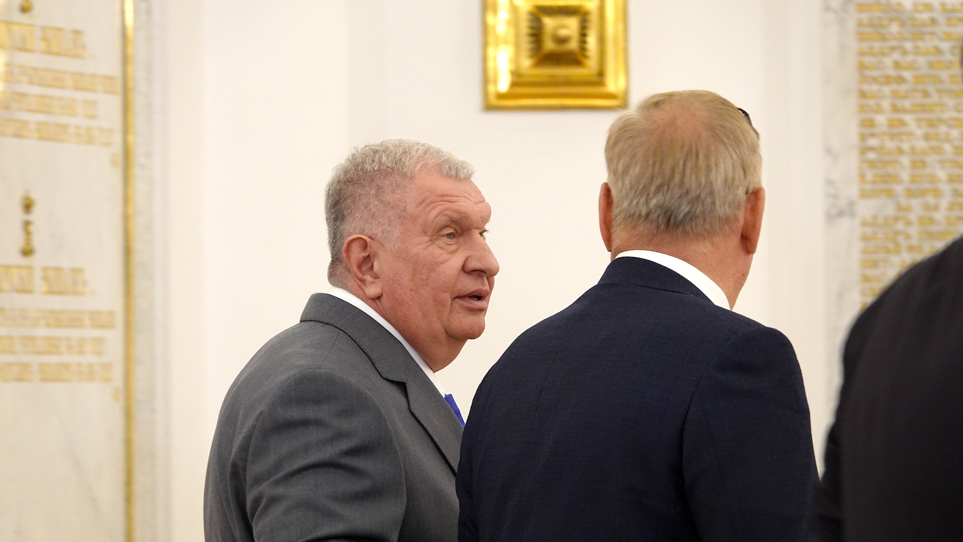 Delegations gradually begin to arrive. One of the first to appear in the hall is Igor Sechin, head of Rosneft.