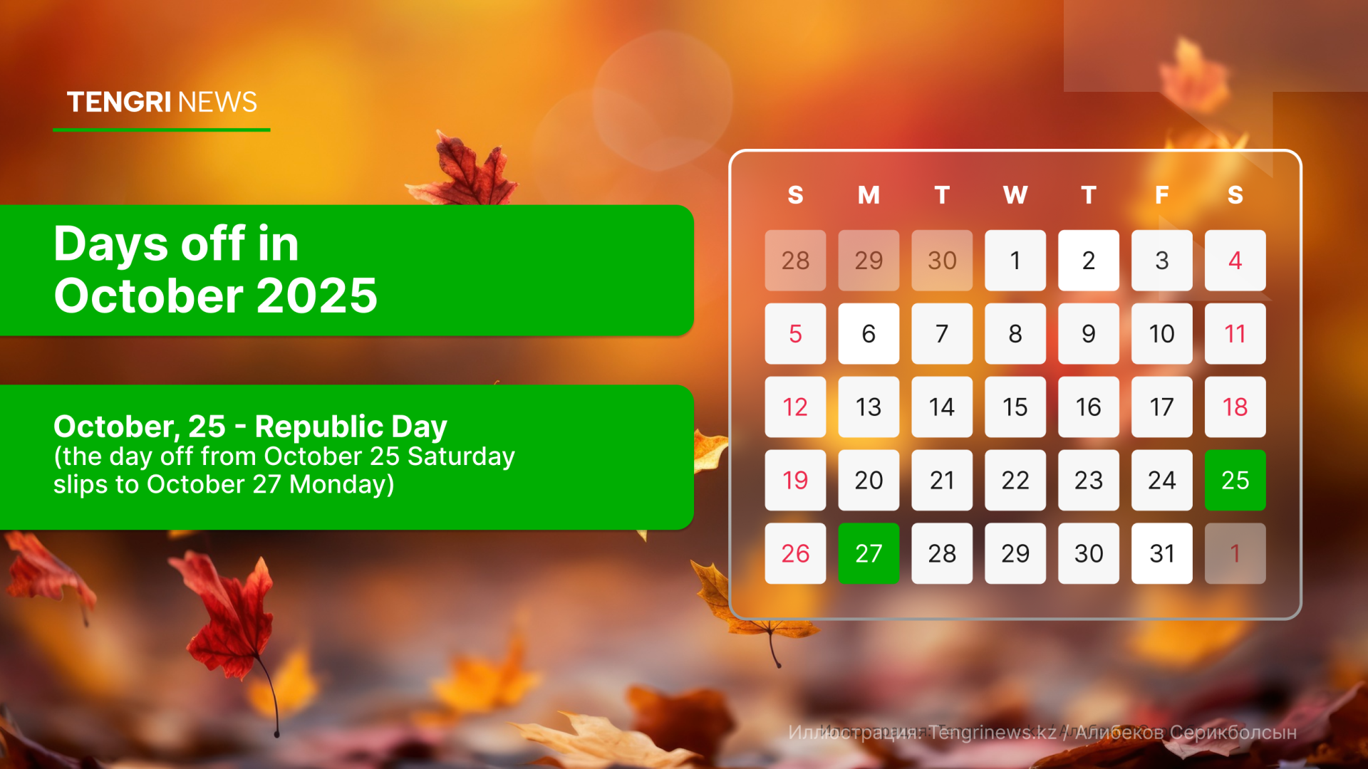 In October, Kazakhstani citizens will get one additional day off – October 25, celebrated as Republic Day. This holiday became an official non-working day in 2022.