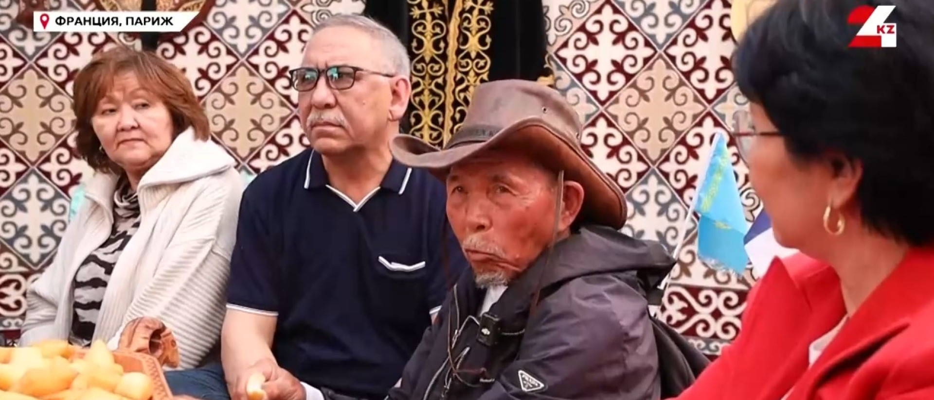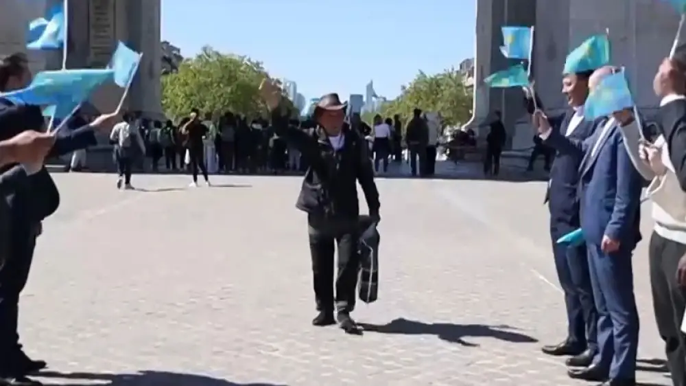 Diplomats and fellow countrymen welcomed the aksakal with applause and shashu in the French capital.