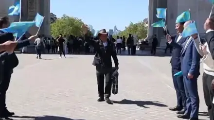 Diplomats and fellow countrymen welcomed the aksakal with applause and shashu in the French capital.