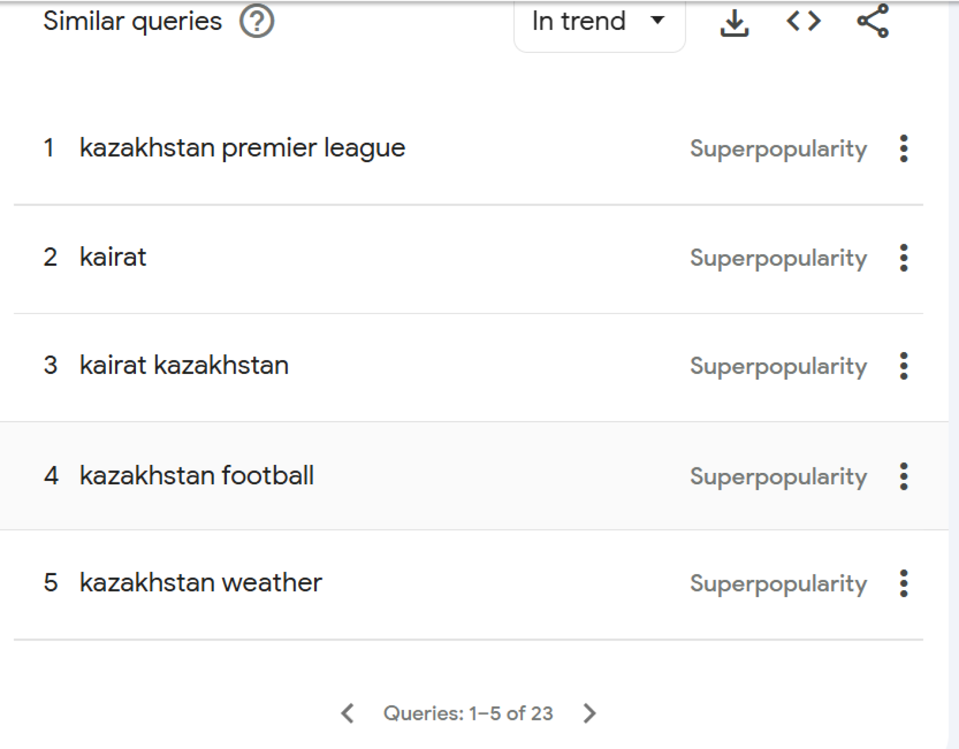 The most popular searches included: