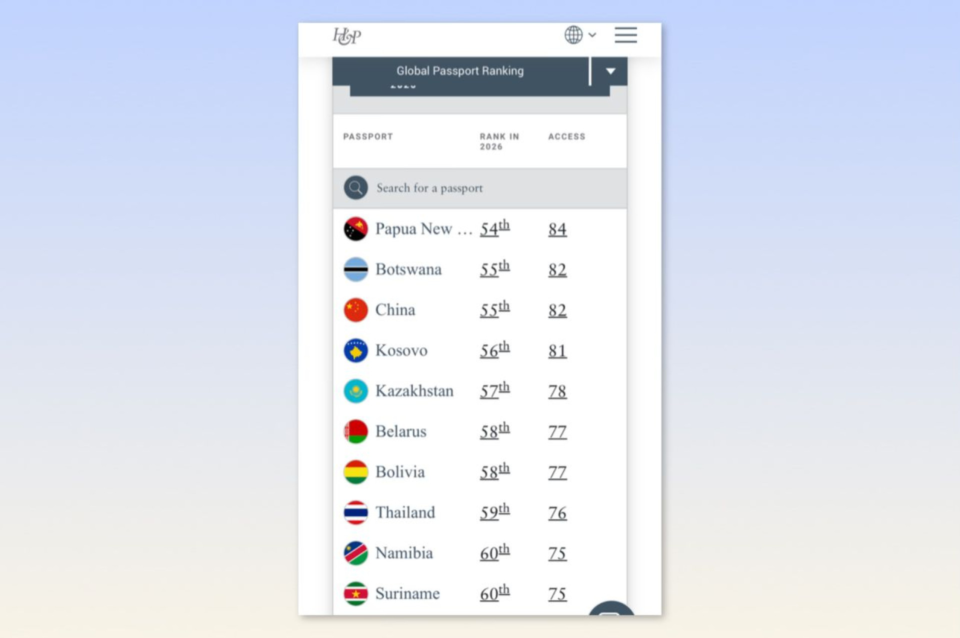 According to the updated ranking by Henley & Partners, Kazakhstan has shown steady progress in recent years. The country ranked 70th in 2023, climbed to 66th in 2024, 61st in 2025, and has now reached 57th place — gaining 13 positions in about two and a half years.