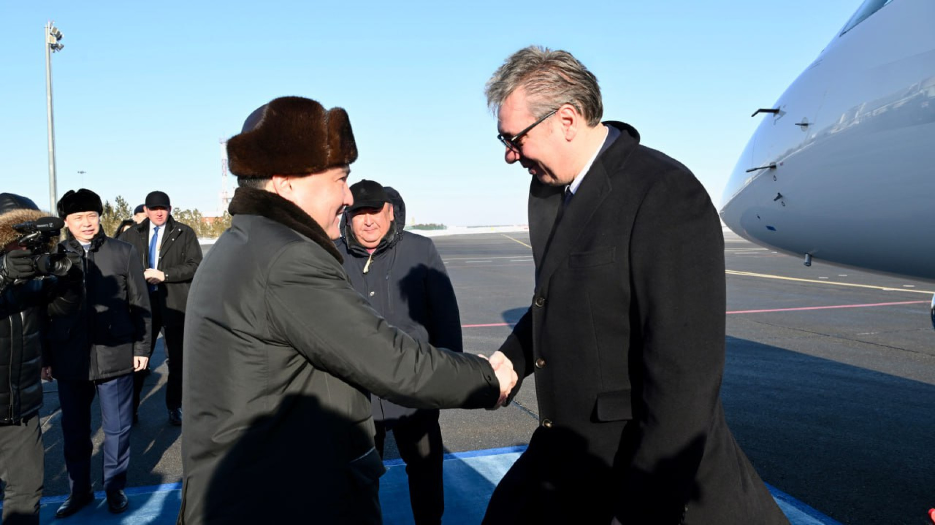 Prime Minister Olzhas Bektanov met Aleksandar Vučić at the airport.