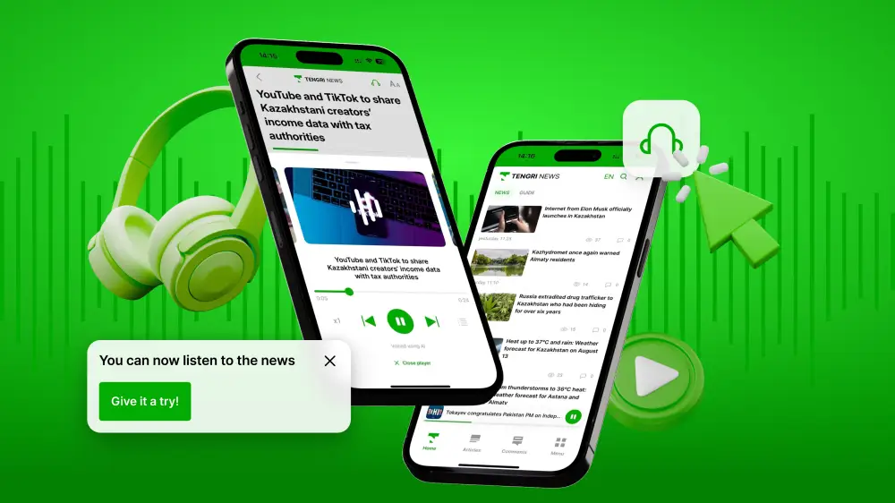 Tengrinews.kz – The Tengrinews.kz website and mobile app have introduced an audio player, allowing users to listen to news in a quick, AI-generated format.