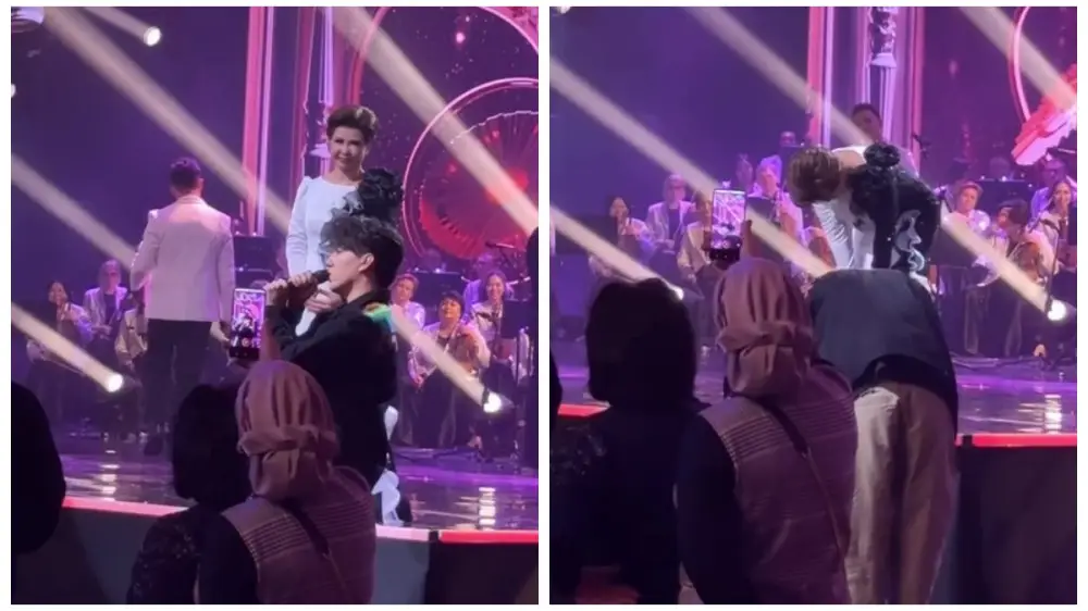 The artist delivered a warm speech in which he called Rymbaeva a role model for all generations of performers and a mentor. Dimash bowed to the singer as a sign of respect and gratitude, expressing his very best wishes to her.