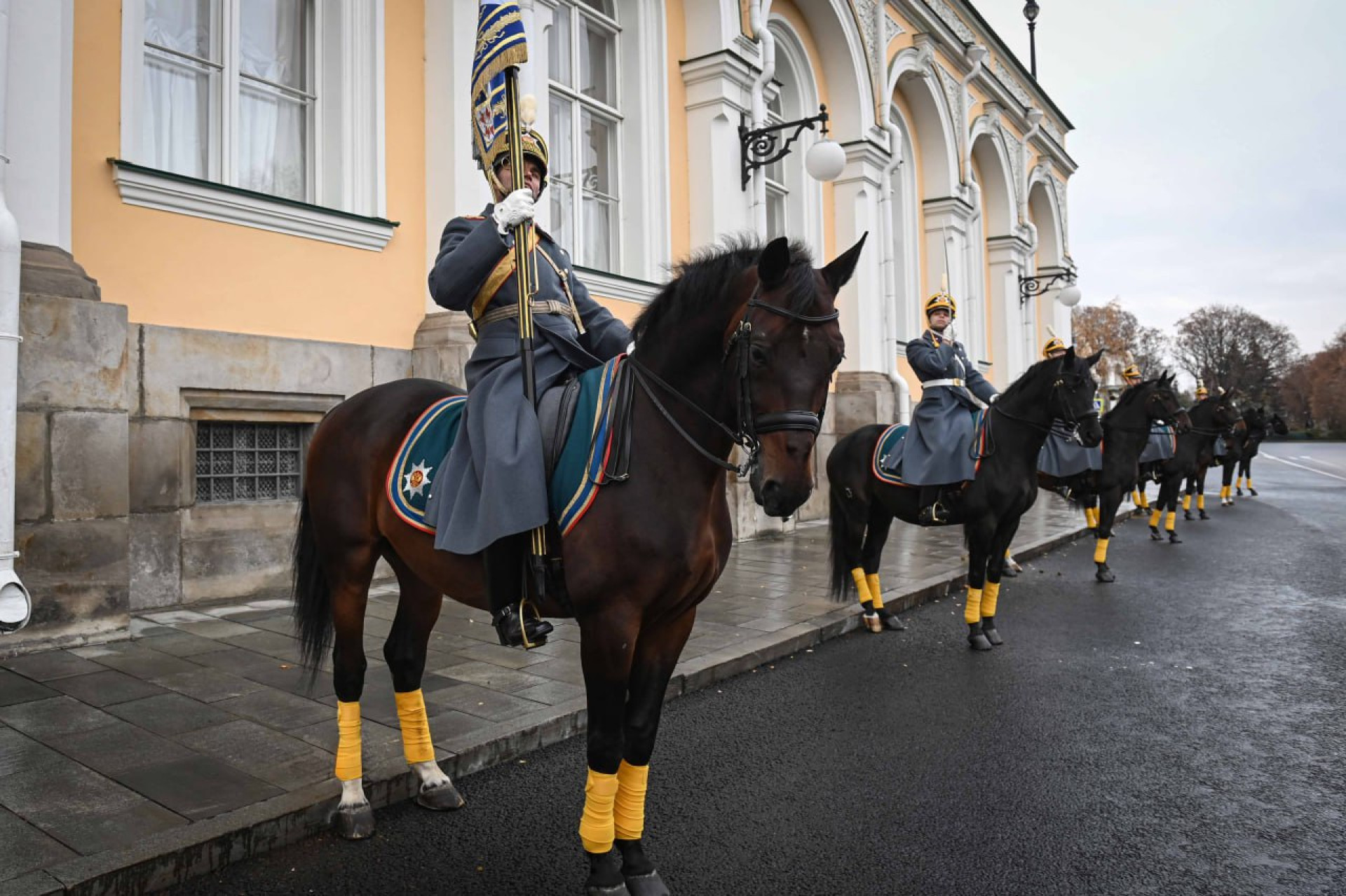 He was met by an honor guard cavalry regiment, while the flags of Kazakhstan and Russia waved near the Kremlin walls.