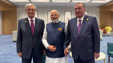 A photo from the sidelines of the Shanghai Cooperation Organization summit in Xinjiang showed Tokayev with Modi and Tajikistan’s President Emomali Rahmon.
