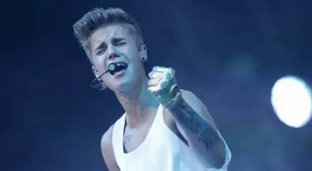Bieber, sporting a baseball cap in what appears to be a hotel room, replies in English, "Yeah, Latina girls are gonna go crazy."