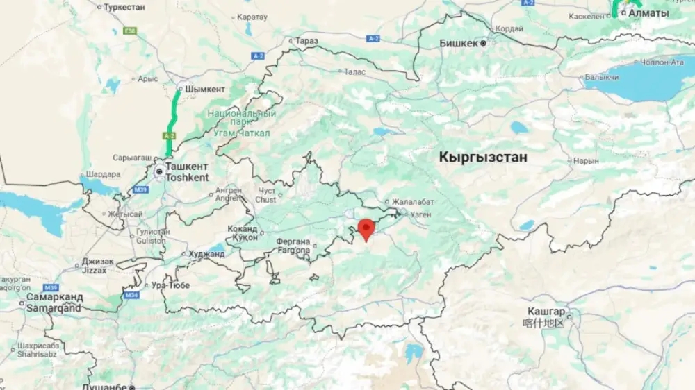 According to the Seismology Institute of the National Academy of Sciences of Kyrgyzstan, the earthquake's epicenter was located 2 kilometers west of the village of Shark.