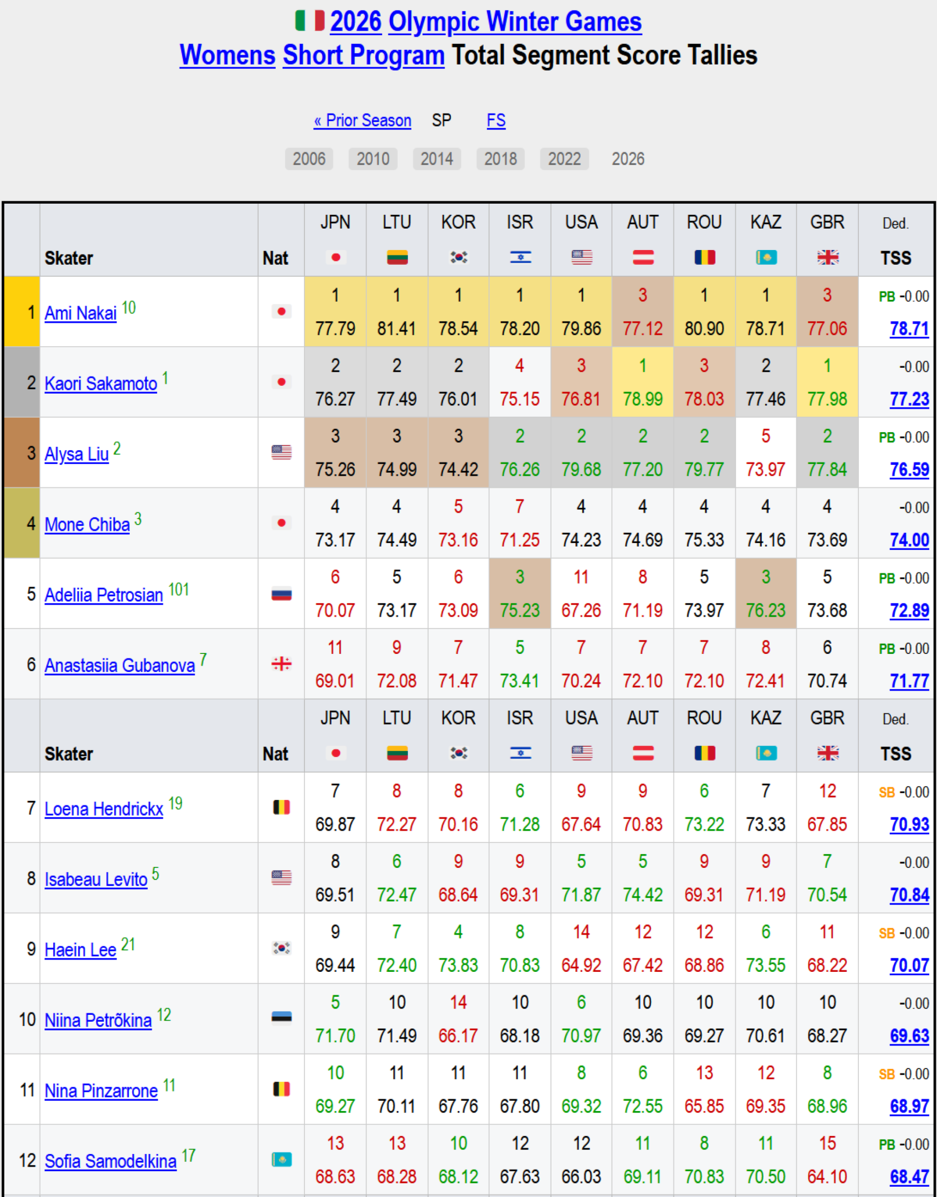 At the same time, Paretskaya scored Petrosyan’s short program at 76.23 — higher than any other judge on the panel. In the free skate, she ranked Petrosyan first with 147.04 points, while giving Alysa Liu of the United States — who ultimately won gold — nine points fewer than the judge who awarded Liu the highest score.