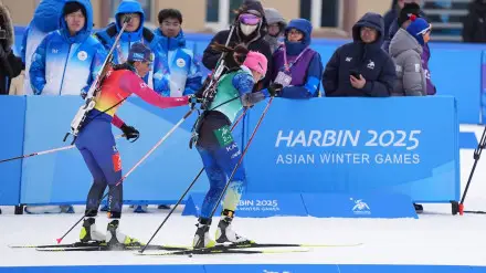 At the Asian Winter Games in Harbin, the women's biathlon team consisting of Daria Klimina, Arina Kryukova, Olga Poltoranina and Yelizaveta Beletskaya showed excellent speed in the 4x6 km relay.