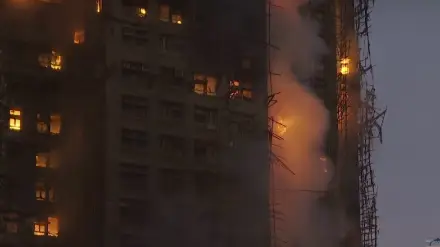 The fire broke out during the day in the Wang Fuk Court residential complex in the Tai Po district and quickly spread through the construction scaffolding and protective netting covering the building facades.